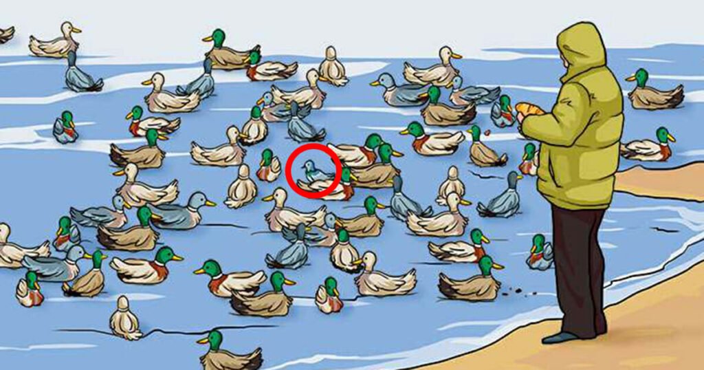 Look closely—among all the ducks, there’s “a little mixing pigeon!”
